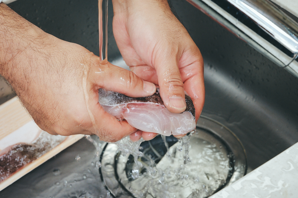 川﨑さん「水で洗うだけでも、魚のくさみが取れます。たらは、においの原因である血合い部分が少ないので、さっとぬめりを洗い流すだけで大丈夫です。洗い終わったらくさみ成分が表面に残らないように、キッチンペーパーなどで水分をぬぐいましょう」