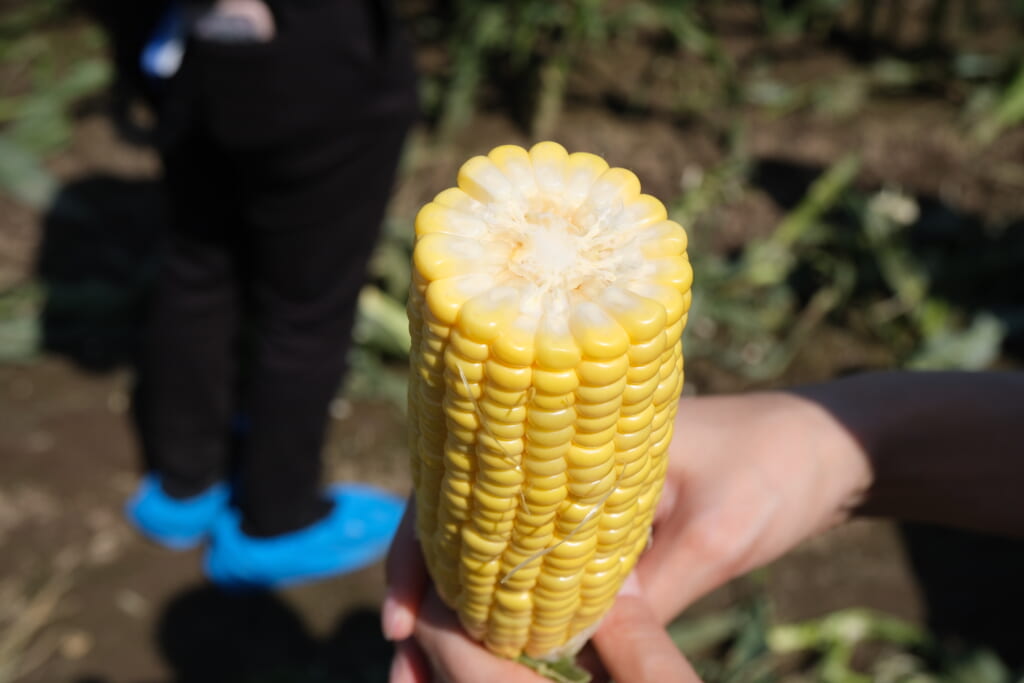 積算温度に加え、もうひとつ重要なのがコーンの甘さと水分量の確認です。