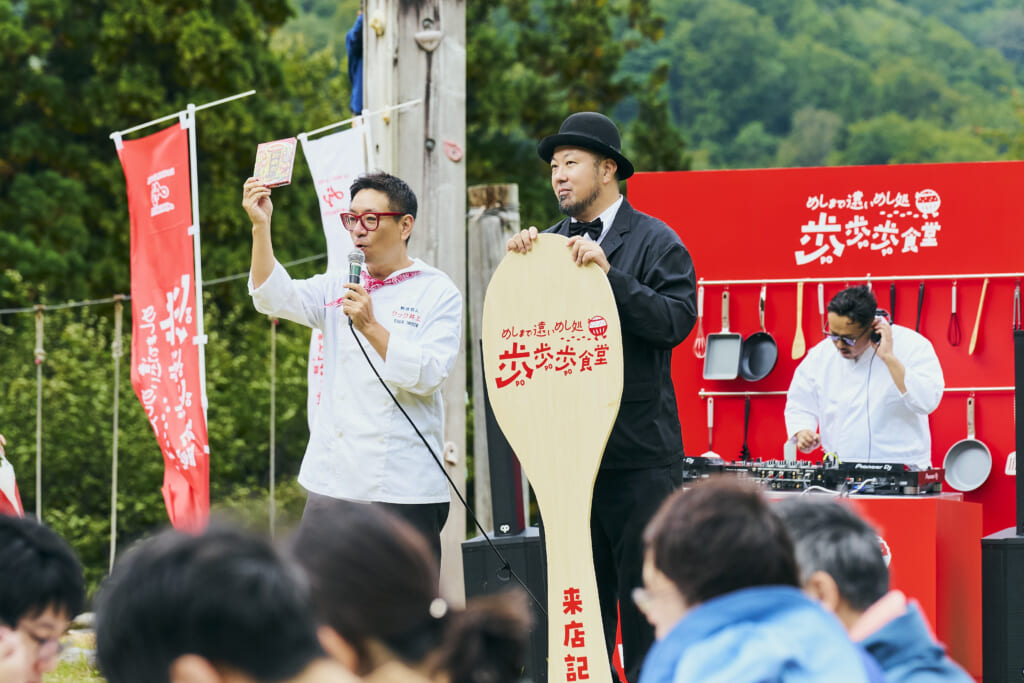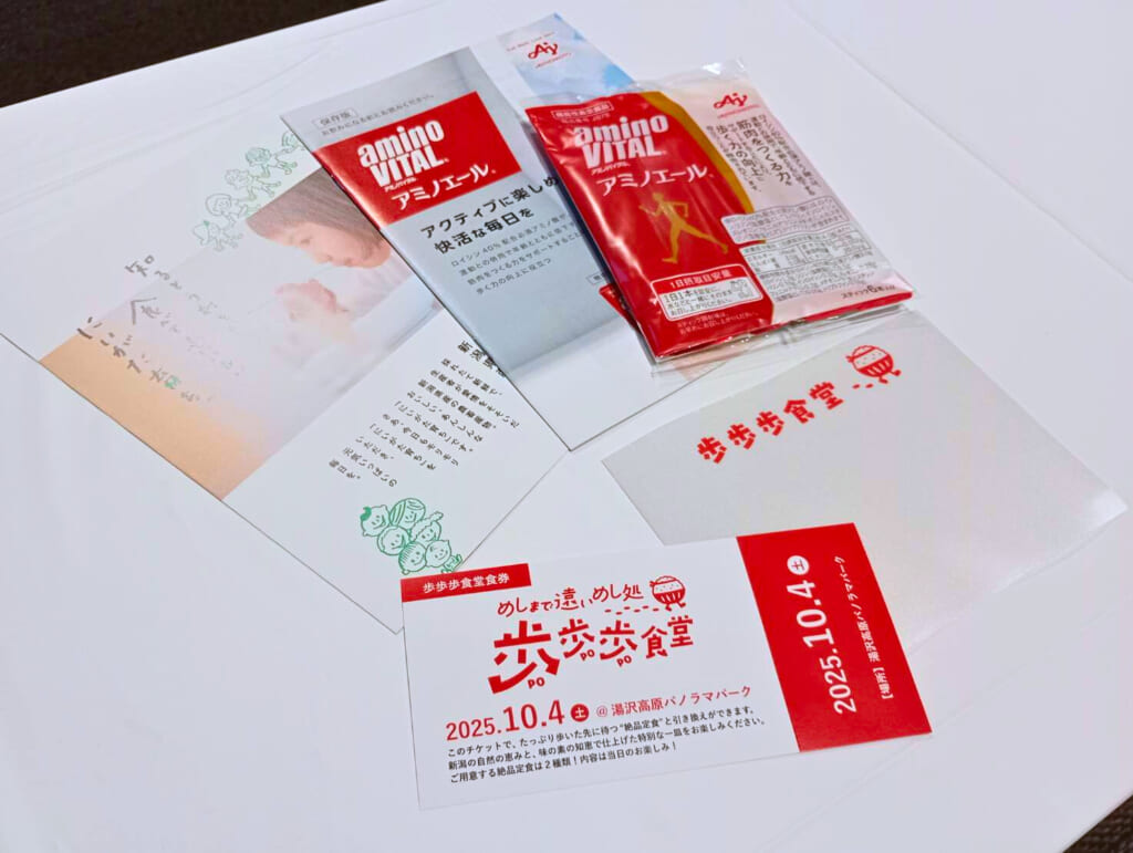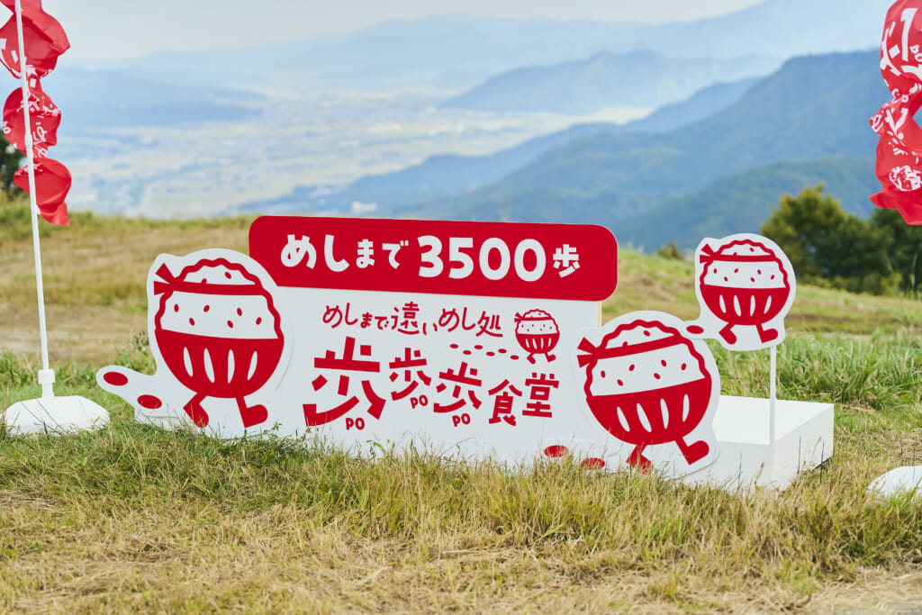 その名も、「めしまで遠いめし処 『歩歩歩(ぽぽぽ)食堂』」! 今回の会場は、新潟県・湯沢高原パノラマパークです。標高1000メートルの山の上を2.5キロ歩いた先に、地元食材やご当地メニューを味の素流にアレンジした「絶品定食」が待っているのだとか。