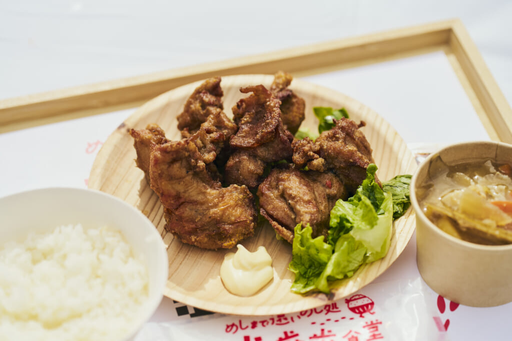 唐揚げは、新潟名物・半身揚げにインスパイアされたスパイシーな味わい。食欲をそそるカレーの香りがふわっと広がります。一方の味噌ポン酢焼きは、新潟県産の豚の脂の甘みとやわらかさにびっくり。どちらも濃いめの味付けで白ご飯がどんどん進みます。
