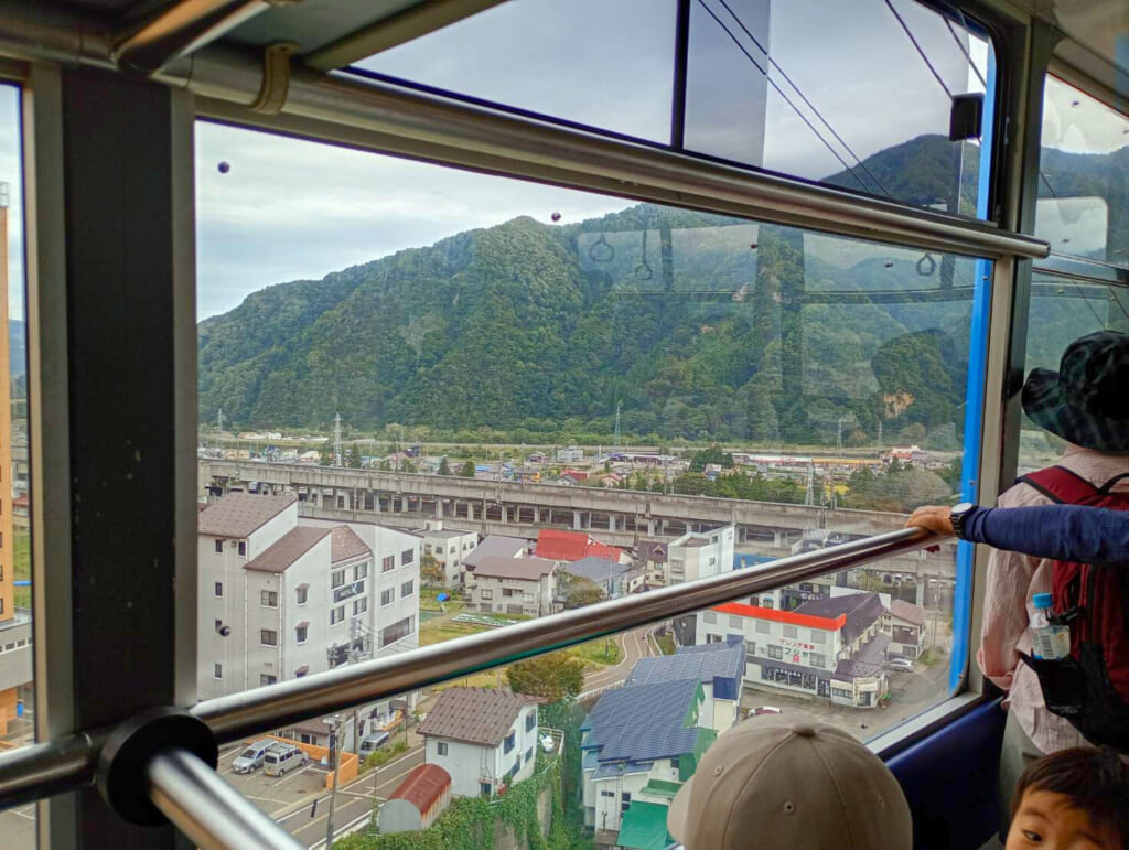 今回の歩歩歩食堂は、ロープウェイで大峰山(おおみねやま)の山頂を目指すところからスタート。少しずつ小さくなっていく街並みを眺めていると、「この先に食堂があるなんて!」という期待がじわじわ高まってきます。