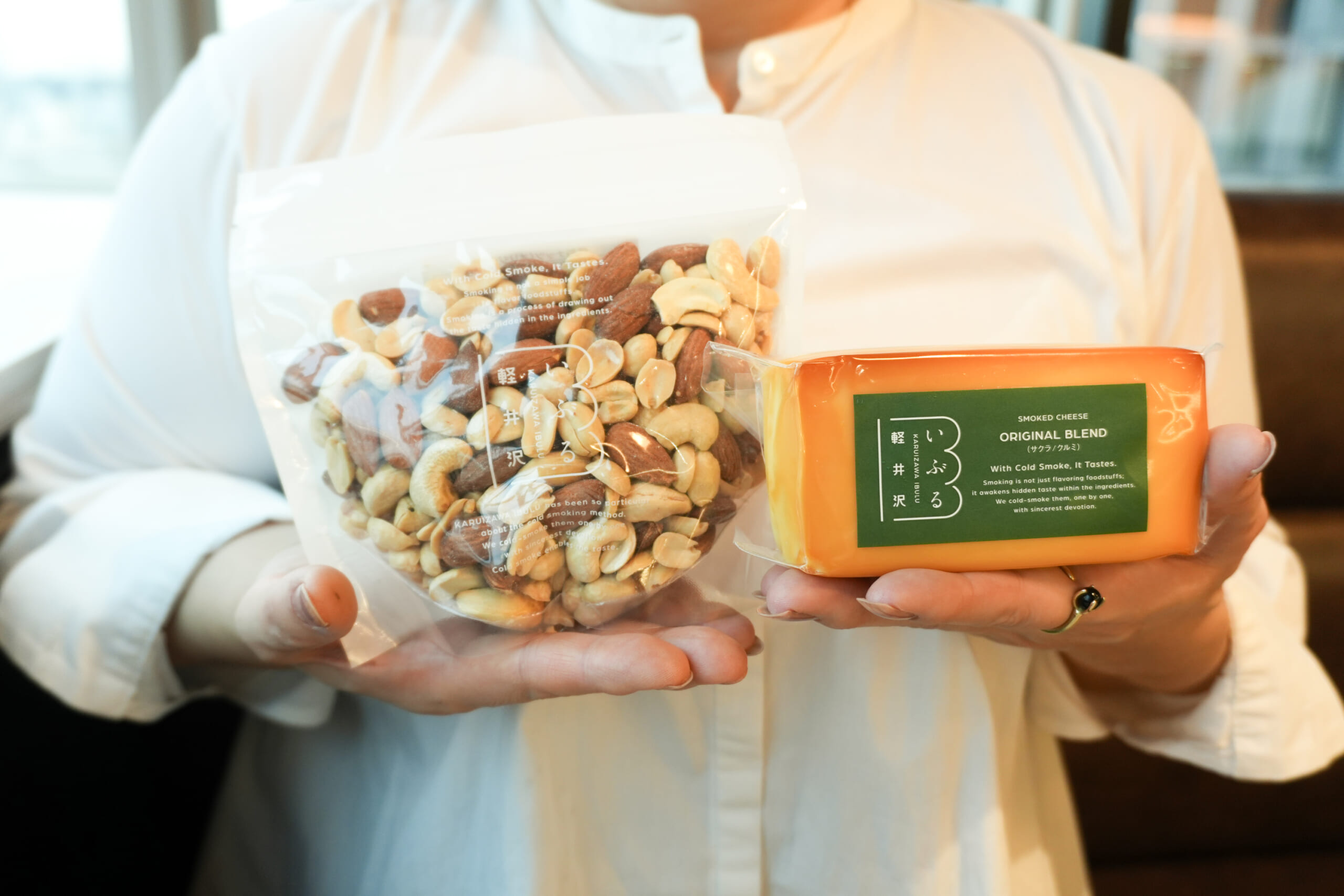先日喜ばれたのは、『軽井沢いぶる』さんの燻製されたチーズやナッツですね。ナッツは出すだけですし、チーズもそのままでもいただけますが、フライパンなどでさっと焼いて、フランスパンなどと一緒に食べたり。みんな気に入ってくれました」