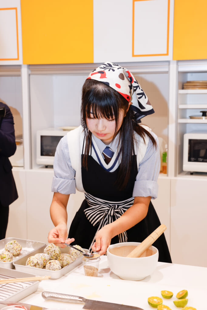 栄養素のリサーチに始まり、適した食材を地元・愛媛県産を中心にセレクト。コロッケの具材にさつまいもとじゃがいもの2種類を使ったり、アーモンドや緑茶の粉末、マーマレードの皮、干しエビなどの隠し味を効かせたりと、複雑で奥行きのある味わいは審査員の間で注目を集めました。
