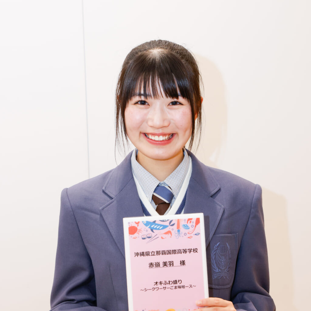 〈個人部門 高校生の部〉でグランプリを受賞。応募作品:『オキふわ盛り~シークワーサーごま味噌ース~』