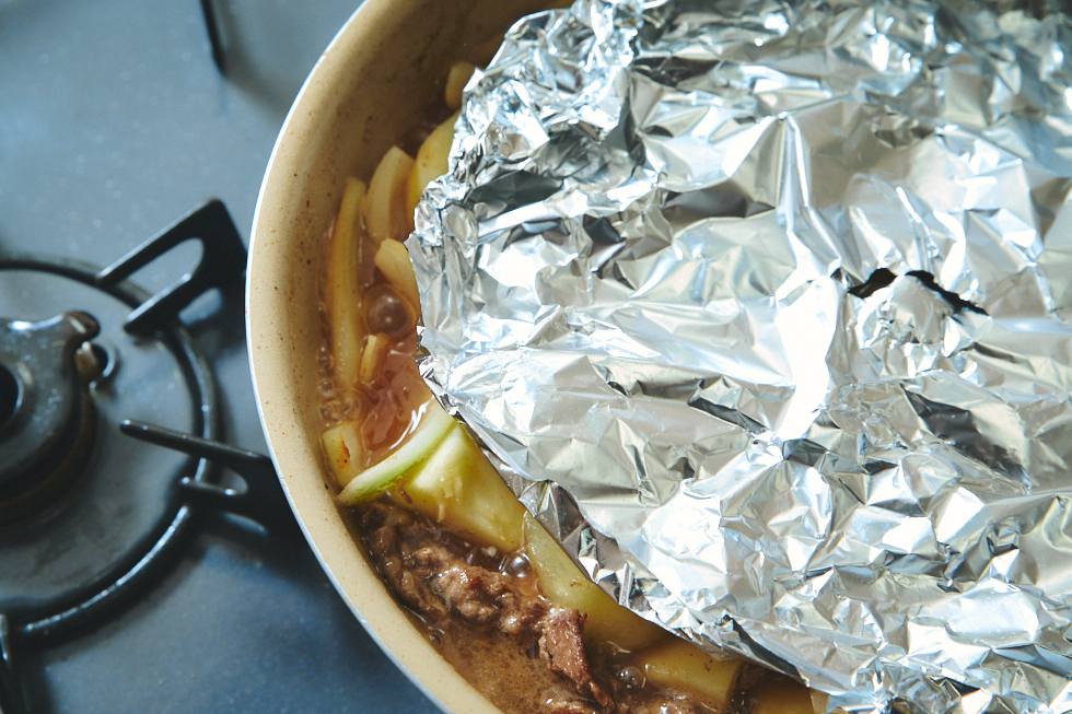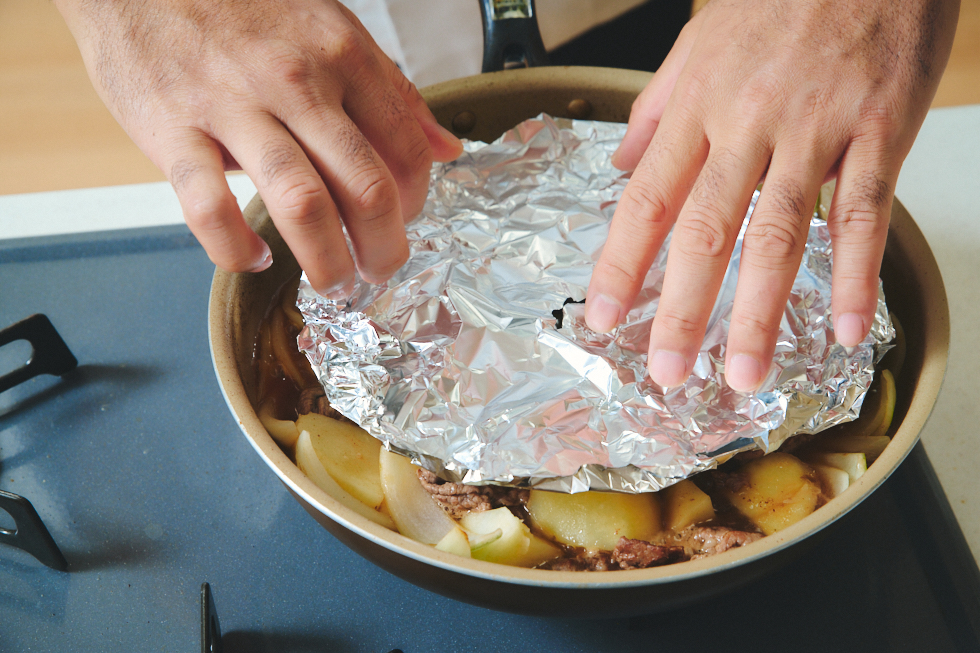 落とし蓋がなければ、アルミホイルやクッキングシートで代用も可能。鍋よりひと回り小さいサイズの落とし蓋を使うことで、蒸気の逃げ道ができ、ほどよく煮詰めることができる