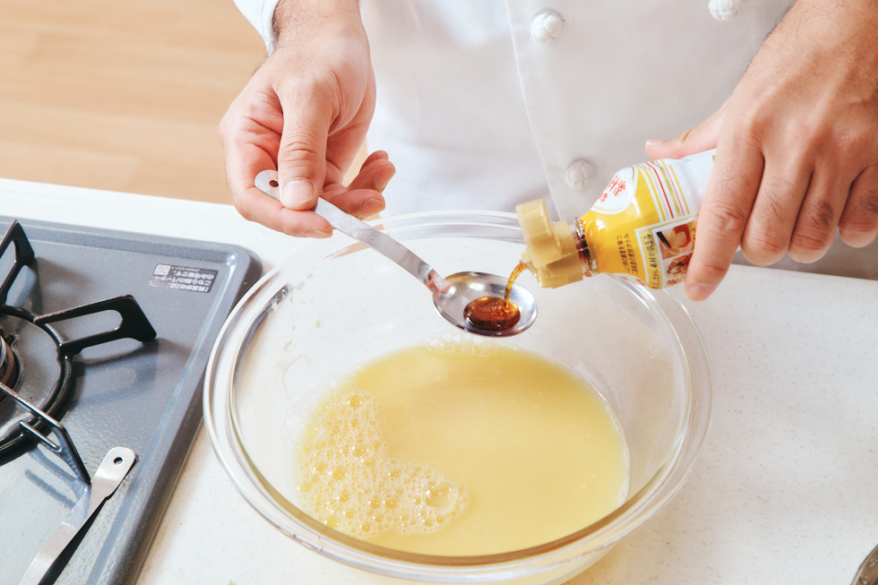 川﨑さん「だし汁の温度が高すぎると、卵が部分的に固まってしまいます。だしを加えたあとは、卵を溶いたときと同じように、箸をボウルの底につけたまま静かに動かして混ぜるのがコツです」