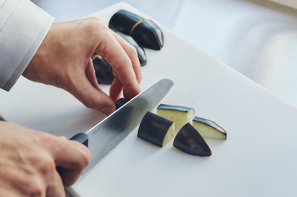 ただ、なすを主役にするにあたって、乗り越えなければならない課題も……。お客様アンケートでは、「油を使うとジューシーになる一方で、吸いすぎてカロリーが気になる」「加熱すると色が変わり、見栄えが悪くなる」といった声が多く寄せられたそうです。
