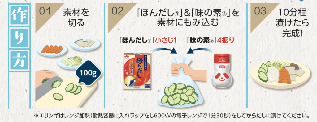 「エリンギのみ、レンジでチンする必要がありますが、個人的にはだしのうま味が一番感じられ、きのことだしの風味が抜群に合っておいしいと思っています!」