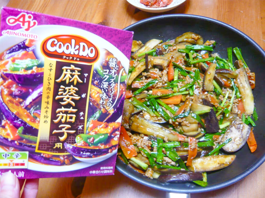 「Cook Do®」<麻婆茄子用>に、ニラをプラスした香り豊かなアレンジ。いつもの麻婆茄子にニラを加えるだけで、風味と食べ応えがぐっと増し、仕上げにさっと炒めることで香りとシャキッとした食感が引き立ちます。野菜が足りないときにも大活躍の、満足感あるひと皿です。