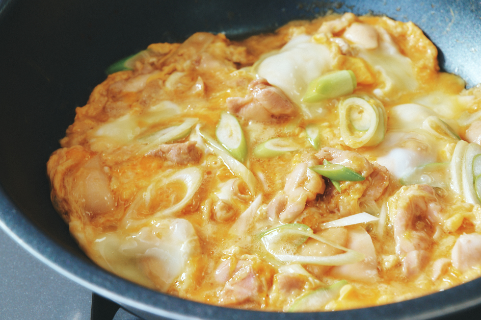 川﨑さん「親子丼の卵をふわっと仕上げるコツは、卵に水溶き片栗粉を加えることです。卵は加熱するとたんぱく質が凝固しますが、片栗粉のでんぷんが、その凝固を和らげ、固まりすぎを防いでくれます。さらに、加熱時に出る水分もキャッチしてくれるため、時間が経ってもしっとりやわらかい食感をキープできます。