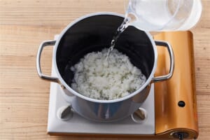 鍋にご飯、Aを入れて火にかけ、煮立ったら、弱火にして10分ほど煮る。 -
