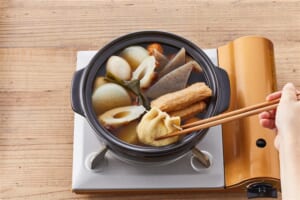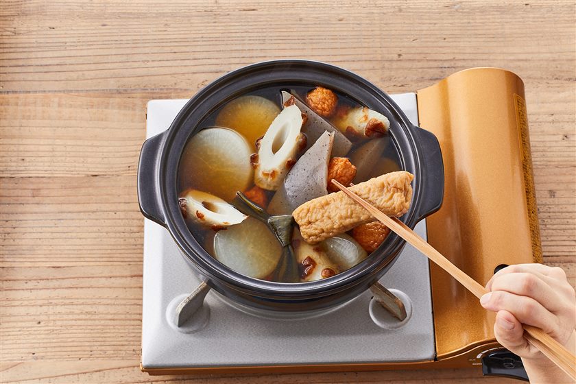 *おでん種から塩味、甘みが出るので、味を確認してしょうゆ少々で味を調える。
