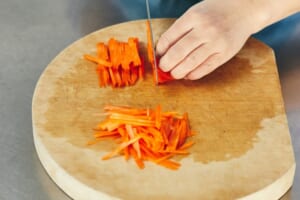 大根・きゅうりは10cm長さのスティック状に切る。 -
