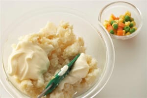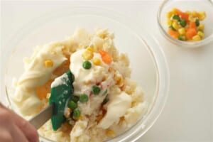 (2)の「ミックスベジタブル」大さじ2を加えて混ぜ、