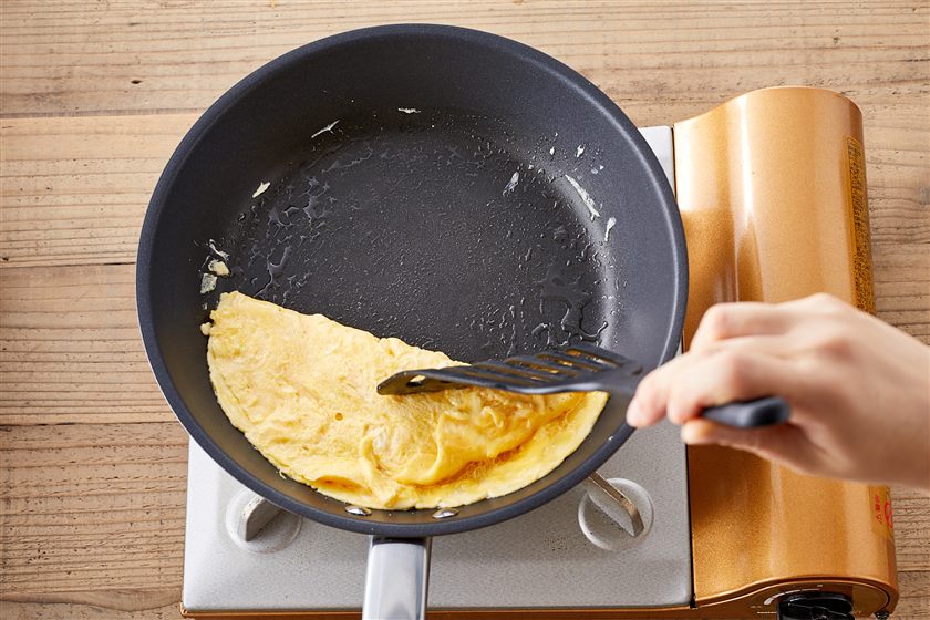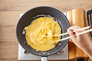 カップに「クノール カップスープ」を入れ、熱湯を注いで、すぐに15秒かき混ぜ、砕いたポテトチップスをのせる。