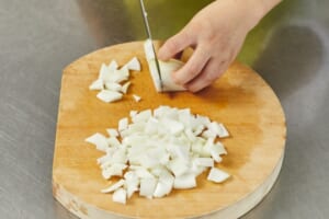 チンゲン菜は葉と芯に分けて切る。葉はザク切りにし、芯はタテ1cm幅に切る。コーンは汁気をきる。 -