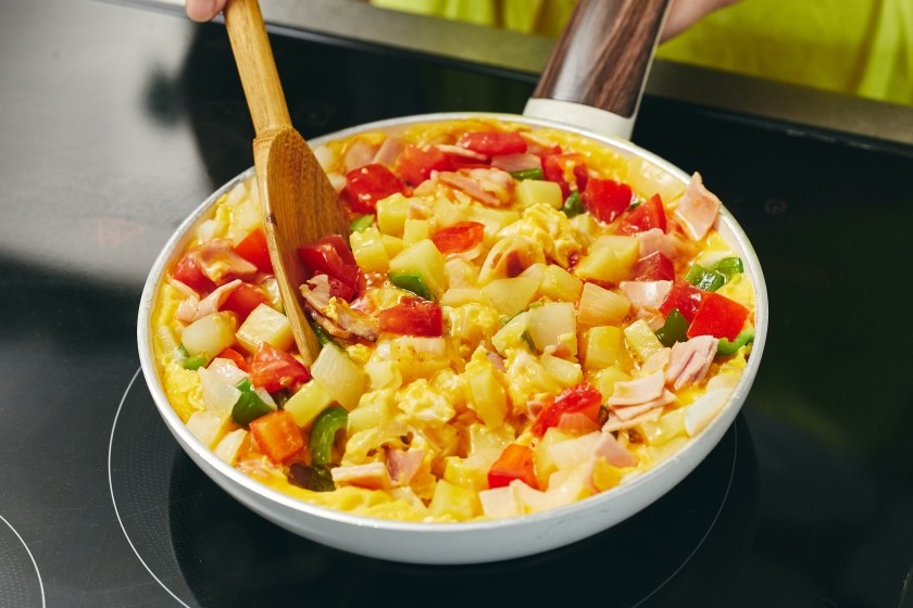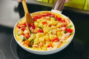 火を弱めてみそを溶き入れ、残りの「毎日カルシウム・ほんだし」を加え、沸騰直前で火を止める。 -