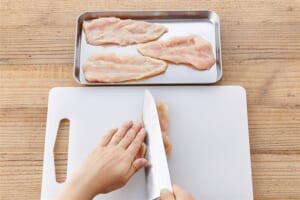 にんじんは2~3mm幅の半月切りにする。 -