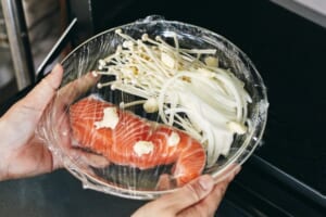ラップをかけ、電子レンジ(600W)で2分30秒加熱する。