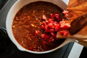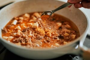 1度目は水と一緒に加えて煮込む・・・うま味がでます。