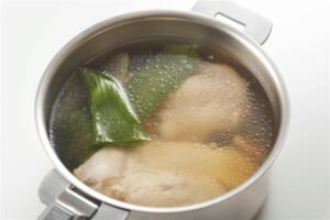 *沸騰した湯に鶏肉を入れるよりも、水を加えて少し煮立ちをおさえた湯の方が、