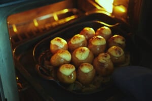 200℃に熱したオーブンで焼き色がつくまで10~15分焼き、仕上げにパセリ、パプリカをふる。 -
