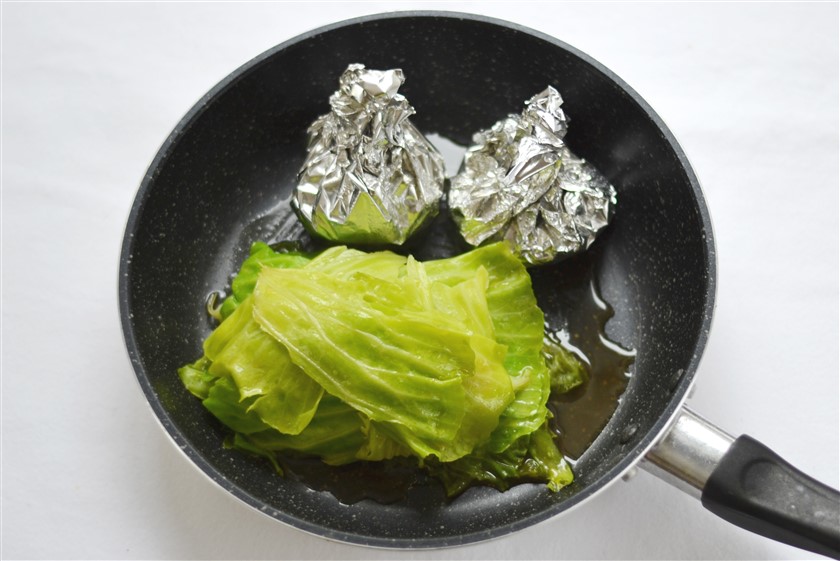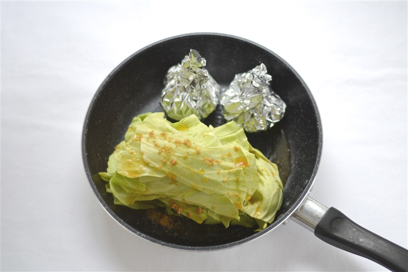 キャベツとベーコンの重ね煮とコーンバター