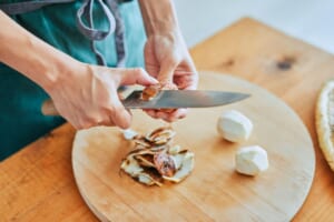 玉ねぎ、トマトは1.5cm角に切り、アスパラは乱切りにする。 -