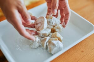 水を加え、煮立ったらアクを取り、2~3分煮てみそを溶き入れ、残りの「ほんだし」を加える。