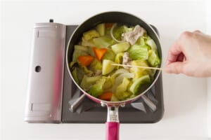 カップに「クノール カップスープ」を入れ、冷たい牛乳を注ぐ。15秒ほどよくかき混ぜて溶かす。 -
