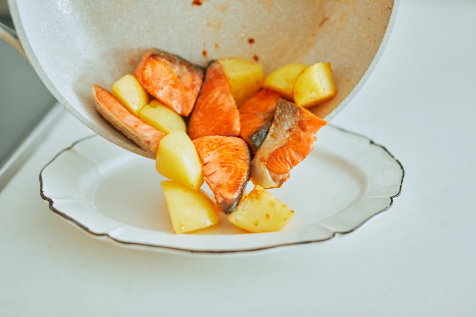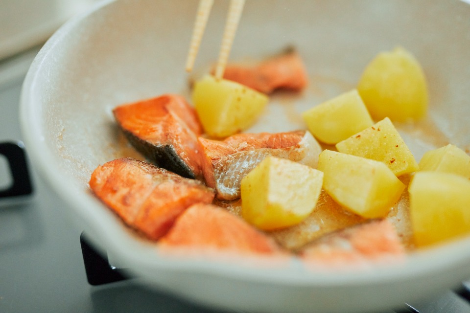 鮭とじゃがいもの塩バター焼き