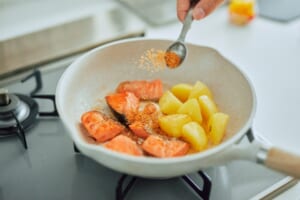 「鮭とじゃがいもの塩バター焼き」
