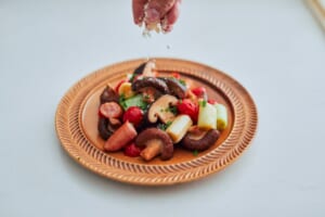 (1)の白菜の葉を加えてサッと煮、塩・粗びき黒こしょうで味を調える。