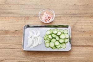 なすはタテ7~8mm幅に切る。 -
