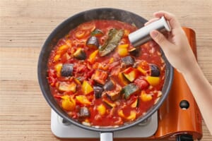 弱火で20分ほど煮る。汁気が足りないようであれば、途中水適量(分量外)を