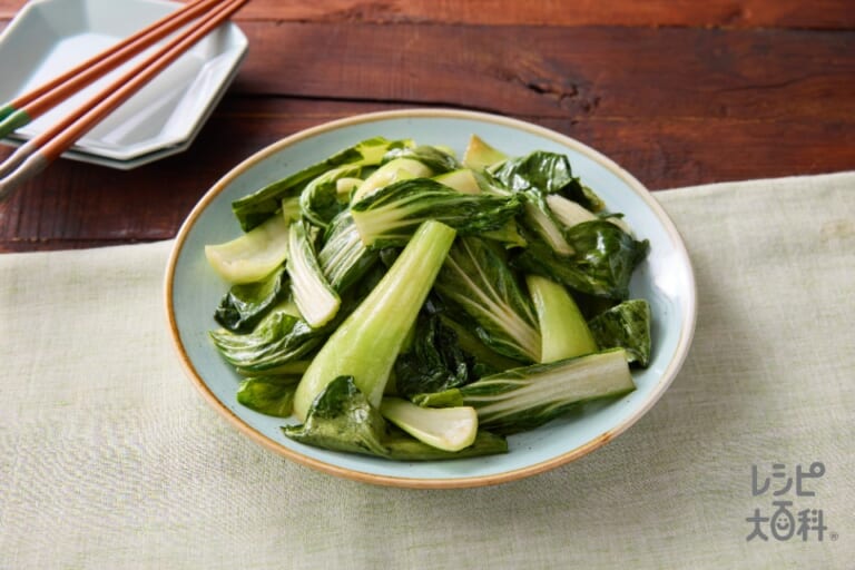 材料:「AJINOMOTO ごま油好きの純正ごま油」,「味の素KK韓だし」牛肉だしの素,チンゲン菜 -
