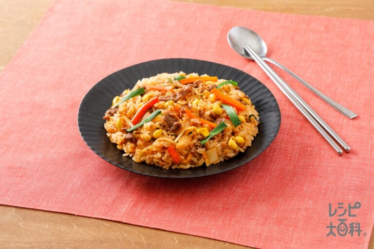 材料:「AJINOMOTO さらさらキャノーラ油」,A片栗粉,A水,Aこしょう,Aしょうゆ,A「丸鶏がらスープ」,A「Cook Do」オイスターソース,にんにくのみじん切り,にら,もやし,にんじん,玉ねぎ,キャベツ,豚こま切れ肉
