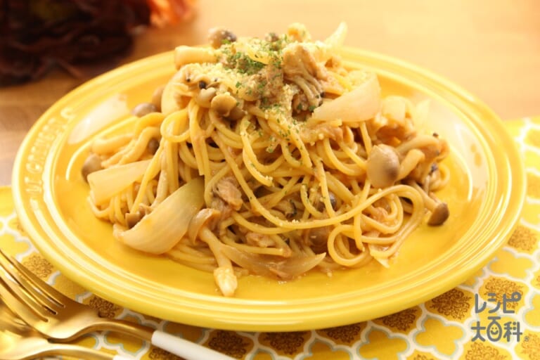 材料:粉チーズ,「AJINOMOTO オリーブオイル」,「パスタキューブ」まろやか豆乳クリーム,水,しめじ,玉ねぎ,ツナ油漬缶,スパゲッティ -