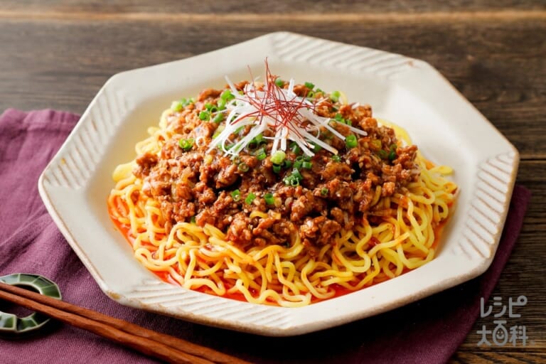 材料:糸唐がらし,小ねぎの小口切り,すり白ごま,「AJINOMOTO ごま油好きの純正ごま油」,「Cook Do」極(プレミアム)麻辣麻婆豆腐用,長ねぎ,豚ひき肉,中華生めん -