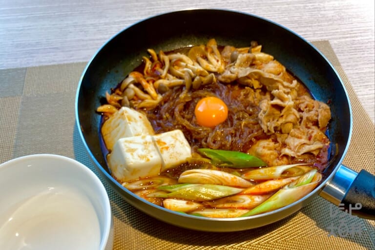 材料:「AJINOMOTO ごま油好きの純正ごま油」,小ねぎの小口切り,A「丸鶏がらスープ」,A水,おろししょうが(チューブ),卵,玉ねぎ,にんじん,絹ごし豆腐