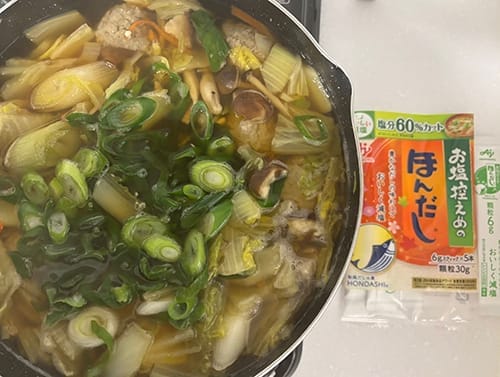 食塩を減らすと、単に塩味が減るだけでなく、料理全体の味のバランスが悪くなり、物足りなさを感じます。そこで役立つのがうま味やだし。味に深みやコクを足すことができ、減塩によって崩れた味のバランスが整い、満足感を得られます。