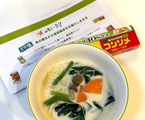 混ぜるだけでお手軽、減塩スープ忙しいときの時短メニューに。